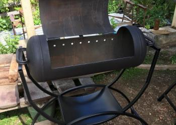 Мангал из газового баллона с печью под казан с задней стенкой в виде паутины