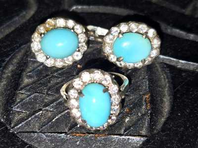 Винтажный серебрянный комплект мексика с бирюзой и фианитами 925.