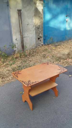 Новый, красивый, крепкий журнальный столик из 12мм фанеры ручной работы с двумя столешницами высотой 52см, верхняя...