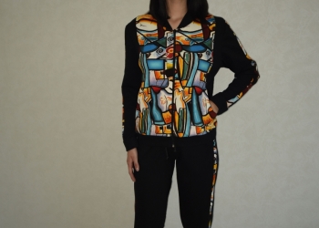 Женский спортивный костюм из футера двухнитки,комбинированный с джерси жаккард.
