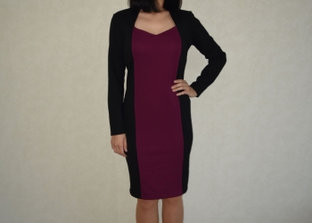 Черное платье комбинированное,прилегающего силуэта с длинными рукавами,без застежки.