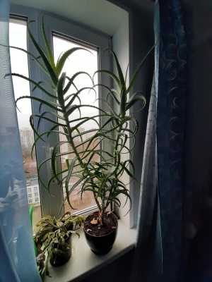 Алоэ лечебный. Возраст более 4 лет в керамическом горшке. Высота растегия 102 см.