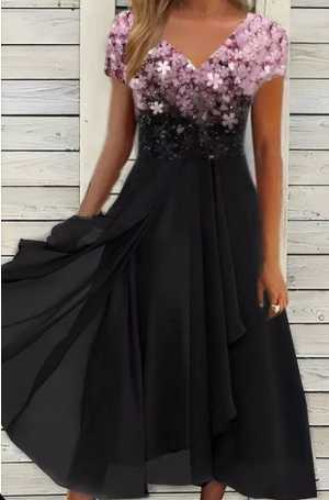 Женское платье из полиэстера, новое, размер 54 (XXL). Фиолетовый цвет с фиолетовым верхом украшенным цветами.