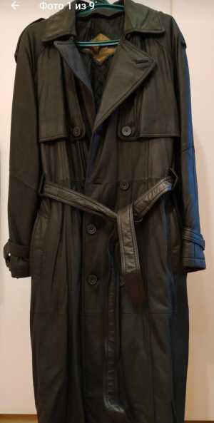 Мужской плащ "а-ля 90-е", натуральная кожа. На объёмного мужчину, размер xxxl (56-58) Подкладка стёганая, утеплённая мехом.