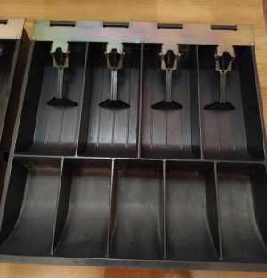 5 шт. кассовые лотки для денег б/у, размер: ширина 30*глубина 31*высота 5 см. Все лапки функционируют.