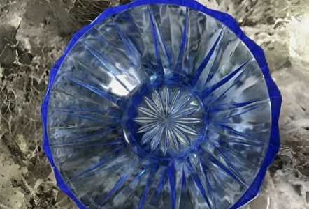 Салатник винтажный с геометрическим рельефным орнаментом,цветное стекло,гранение, СССР,1960-1970-к гг.