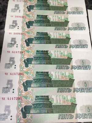 Банкноты номиналом 5 рублей в отличном состоянии (пресс). Цена за 1 штуку.