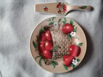 Подставка-тарелка с лопаткой для пирога, торта, для пиццы и т. д.. Керамика, диаметр 27 см..
