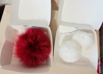 Помпоны из кролика рекс, калифорнийского и новозеландского, финского песца, енота и рыжей лисы в ассортименте.