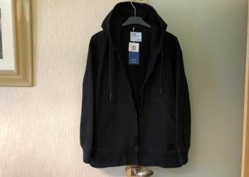 Новая, черная, джинсовая куртка -бомбер «Bershka», на молнии, с капюшоном, плотный хлопок, «S»,оверсайз, большемерит на 46...