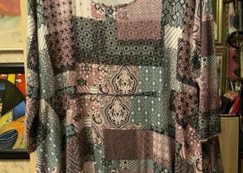 Грудь 120, низ 140, длина 66/74, пройма 30, рукав 65 см Материал стрейч потрясающий- словно шёлк
