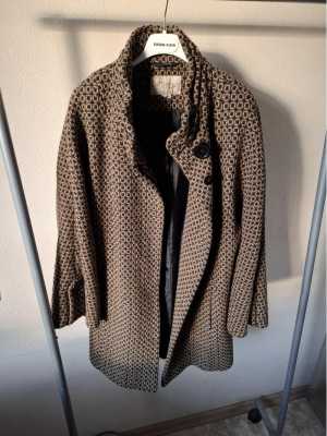 Женское пальто дорогой марки Trifo original. Жакардовое плетение в котором есть золотая нить люрекса.