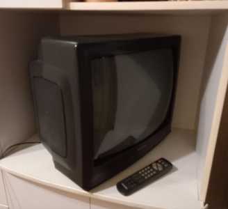 В рабочем состоянии. Производство 1996 примерно. Самсунг. Фирменный. Диагональ 50 см. Пульт в наличии