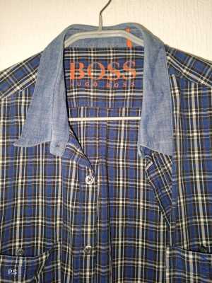 Ткань хлопок Цвет темно синий в клетку На груди два кармашка Отделка манжета и воротника джинса По плечам 48 см Новая...