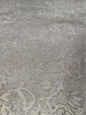 Продается отрез серебристой парчи из полиэфирного волокна с жаккардовым узором. Размеры: длина 150 см., ширина 88 см.