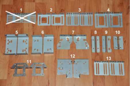 Металлические крепления для 2-DIN магнитол к консоли автомобиля. 2, 3, 4, 13 - 3OOp. 5, 6, 7 - 4OOp. 8, 9, 10 - 2OOp.