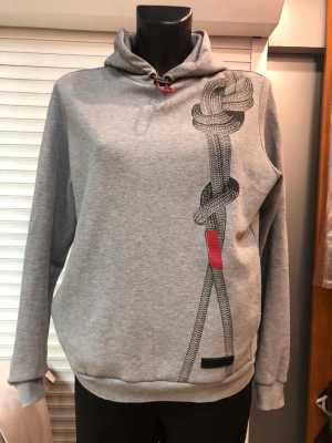 Свитшот, толстовка с капюшоном линии Burberry Sport, с прикольным принтом узла и маленькими патчами, на российский 44-46.