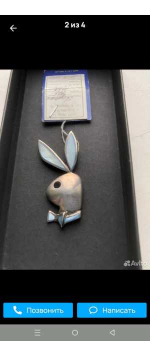 Кулон подвеска кролик Playboy, серебро, уши и бант из голубого перламутра