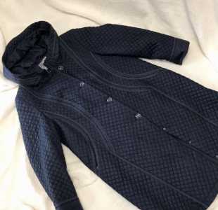 Стёганое демисезонное пальто темно-синего цвета. Бренд OHARA. В отличном состоянии. Состояние новой вещи.