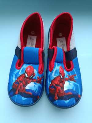Тапочки с Человеком-пауком, размер 31 (длина стельки 19,5 см). Яркий синий цвет с принтом героя.