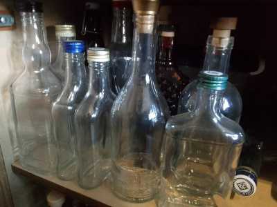 Продам чистые (без этикеток, запоха и клея) стеклянные бутылки с крышками разного объёма.