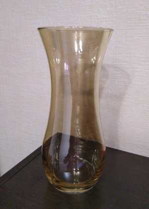 Ваза стеклянная, полупрозрачная, янтарного цвета, высота 255 мм. Производство г. Гусь-Хрустальный, Россия (фото 1 - 5).
