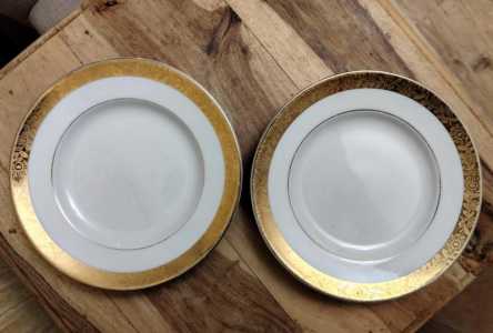 Десертные тарелки похожего дизайна. Фарфор, с золотой каймой. - фото 1-5 ЛФЗ 1-й сорт. 2 штуки. Диаметр 18 см.