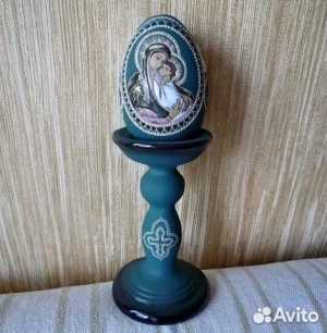 Яйцо пасхальное керамика. На подставке, ручная работа, роспись, эмаль с перламутровым отливом.