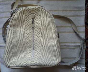 Рюкзачок женский, летний, городского типа. Натуральная кожа под кожу рептилии. Цвет слоновая кость/шампань.