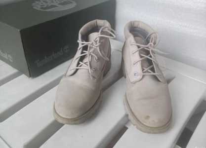 Продаются женские ботинки Timberland, размер 37,5 (25 см). В хорошем состоянии, без дефектов. Цвет — светло-бежевый.