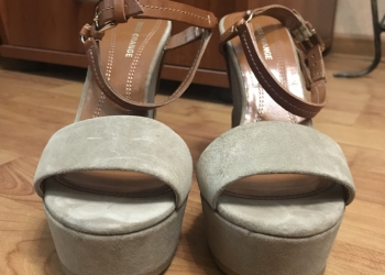 Летние босоножки на танкетке из нат замши бежевого цвета. Одевала пару раз.