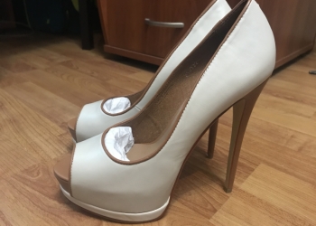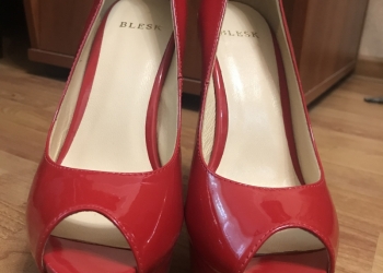 Туфли на высоком каблуке, красный лак. Одевала пару раз.