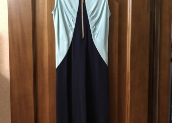 Трикотажное платье в обтяг темно синего цвета, сзади снизу молния.