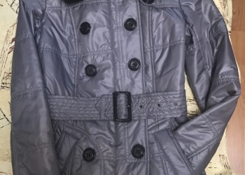 Куртка демисезонная серого цвета. Размер 40-42. Мех кролик чёрного цвета съемный. Капюшон также съемный.