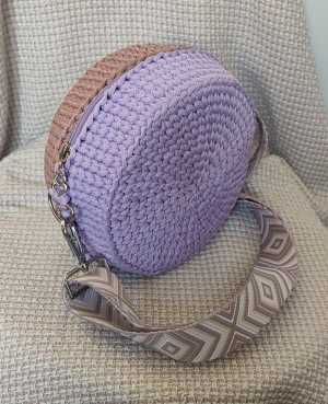 Женская сумка ручной работы, на молнии . Материал - полиэстерный шнур. Диаметр - 18 см, ширина - 9,5 см.