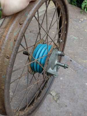 Запчасти на мотоцикл Минск М105, оригинал: колесо переднее с опорником, колодками и осью; генератор кулачковый 421.