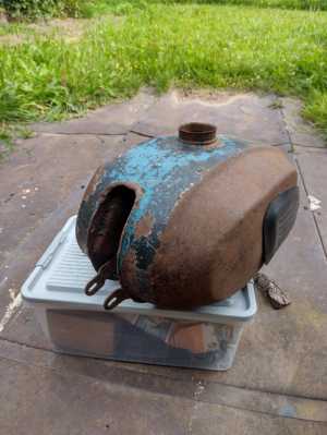 В распродаже, топливный бак на мотоцикл производства СССР Муравей. Состояние хорошее, без дыр.