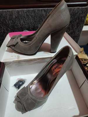 Туфли серые с замшевым бантиком б/у, но в очень хорошем состоянии. В комплекте запасные набойки. Высота каблука 10см.