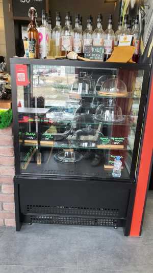 Кондитерская витрина холодильная Анкара, б/у состояние новой 95000 Стеклянные тортницы-пироженницы 5шт по 2500. Мощность 0.