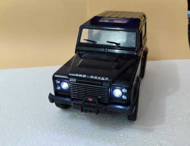 Машина б/у. Дверцы открываются, в одной дверце отсутствует верхнее окно, оно поломано. Передние фары рабочие, горят и мигают.