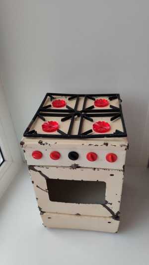 Игрушечная металлическая печь ссср . Разбита временем и игрой.