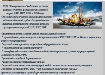 ООО "КранЗапчасть" производит и реализует широкий перечень запасных частей к гусеничным кранам МКГ, РДК, ДЭК.