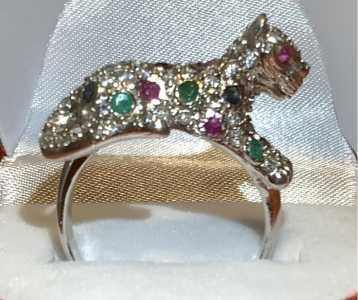 Кольцо пантера с природными сапфирами, рубинами, изумрудами, без обработки, размер вставок 1, 1,5mm, высота самой верхней...