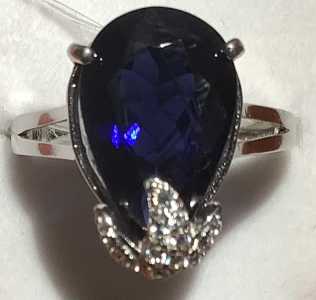 Кольцо - перстень с редким крупным природным синим водяным сапфиром- иолитом груша, без обработки 5ct (16.