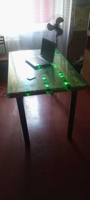 Новый стол из эпоксидной смолы, RGB подсветкой, под столешницей сделана розетка, ручная работа