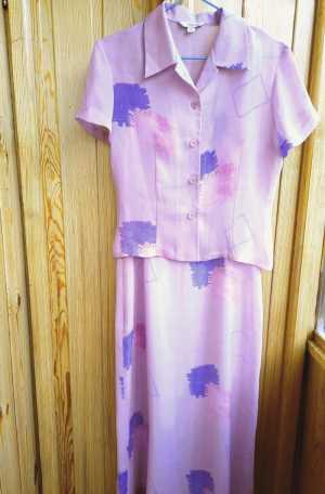 Продаю длинное платье на бретельках с жакетиком с короткими рукавами из ткани типа шифона (немного плотнее) с подкладом.
