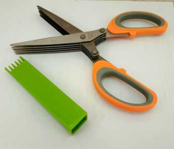 Продаю новые без упаковки ножницы для нарезки зелени, у которых 5 лезвий. Длина ножниц – 19,5 см Длина лезвий - 8 см.