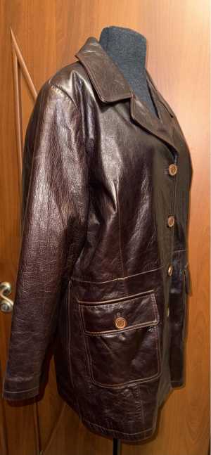 Прекрасная натуральная кожаная куртка. Стильная. Цвет: баклажаново-коричневый.