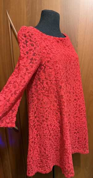 Красное платье, как на фото. Гипюровое, с подкладкой. Крой трапеция.