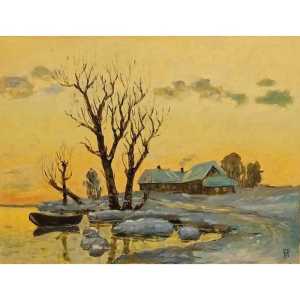 Картина маслом на холсте, пейзаж "Зимний день" 2019г. Размеры картины: Высота 59 см. Ширина 79 см.